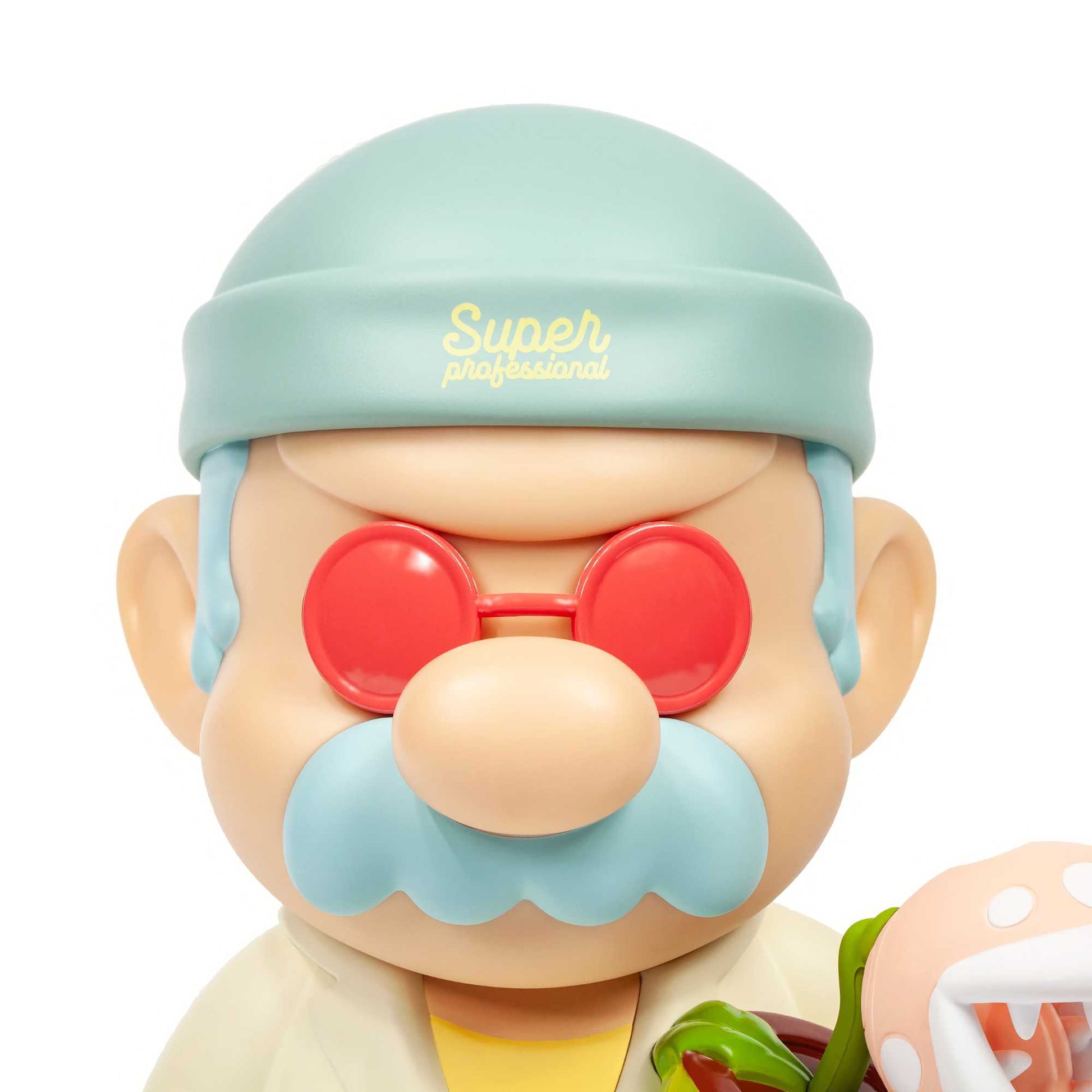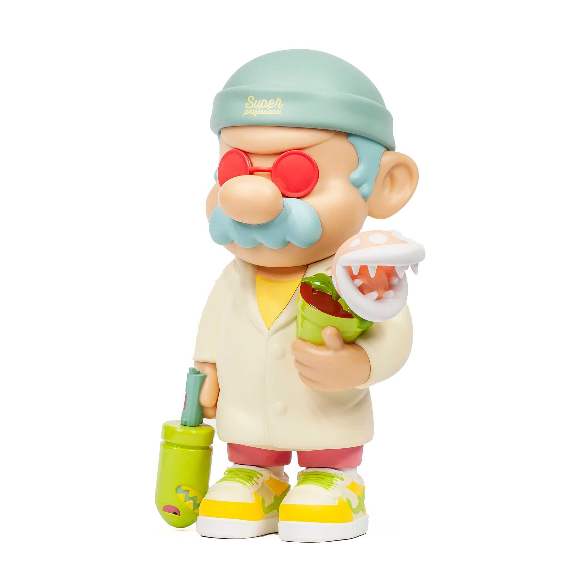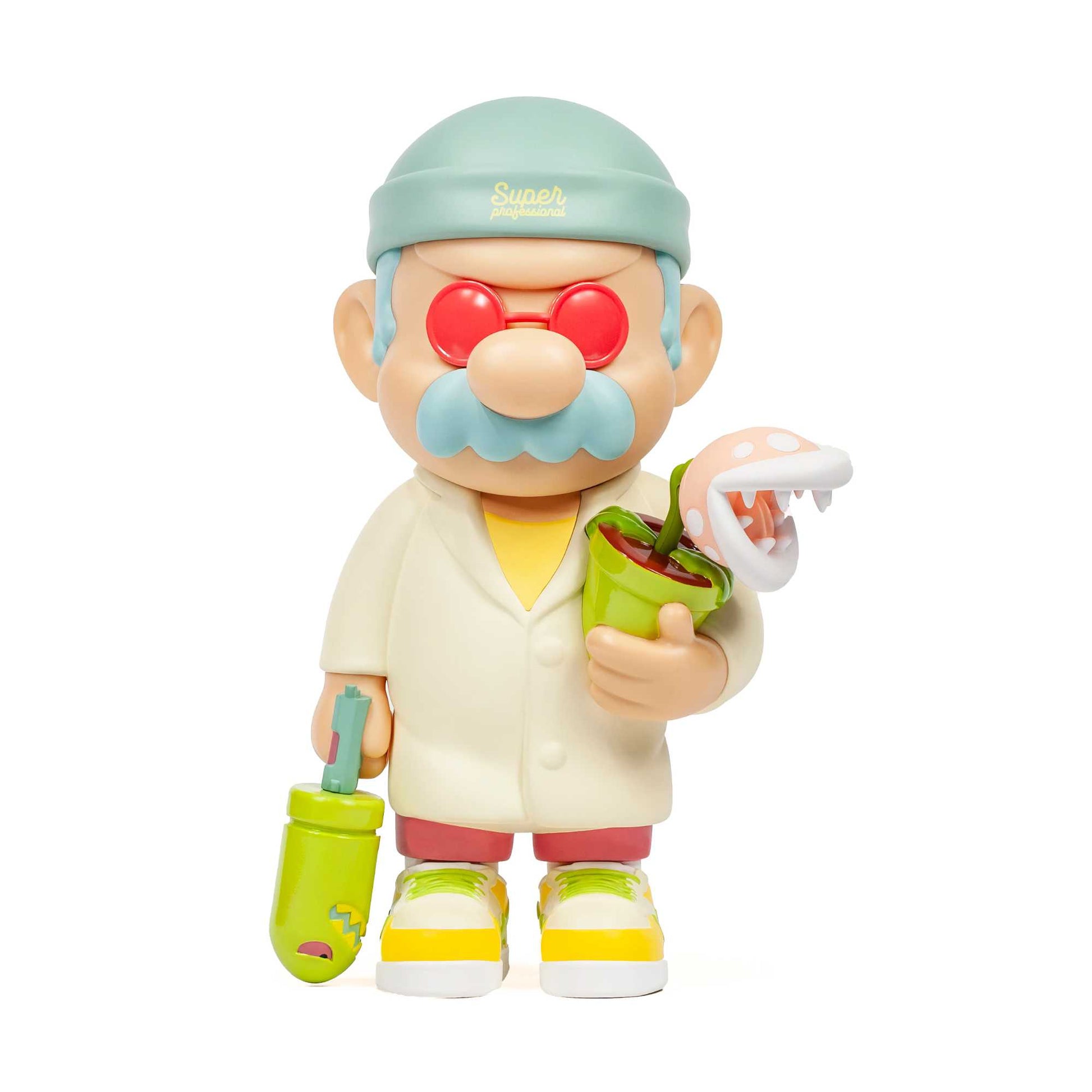 Sup Pro Essential vinyl art toy which is a 10.24″ version of the Sup Pro XL sculpt. The figure features the familiar load-out with the Bullet Bill-silenced pistol in one hand and a Piranha Plant in the other.