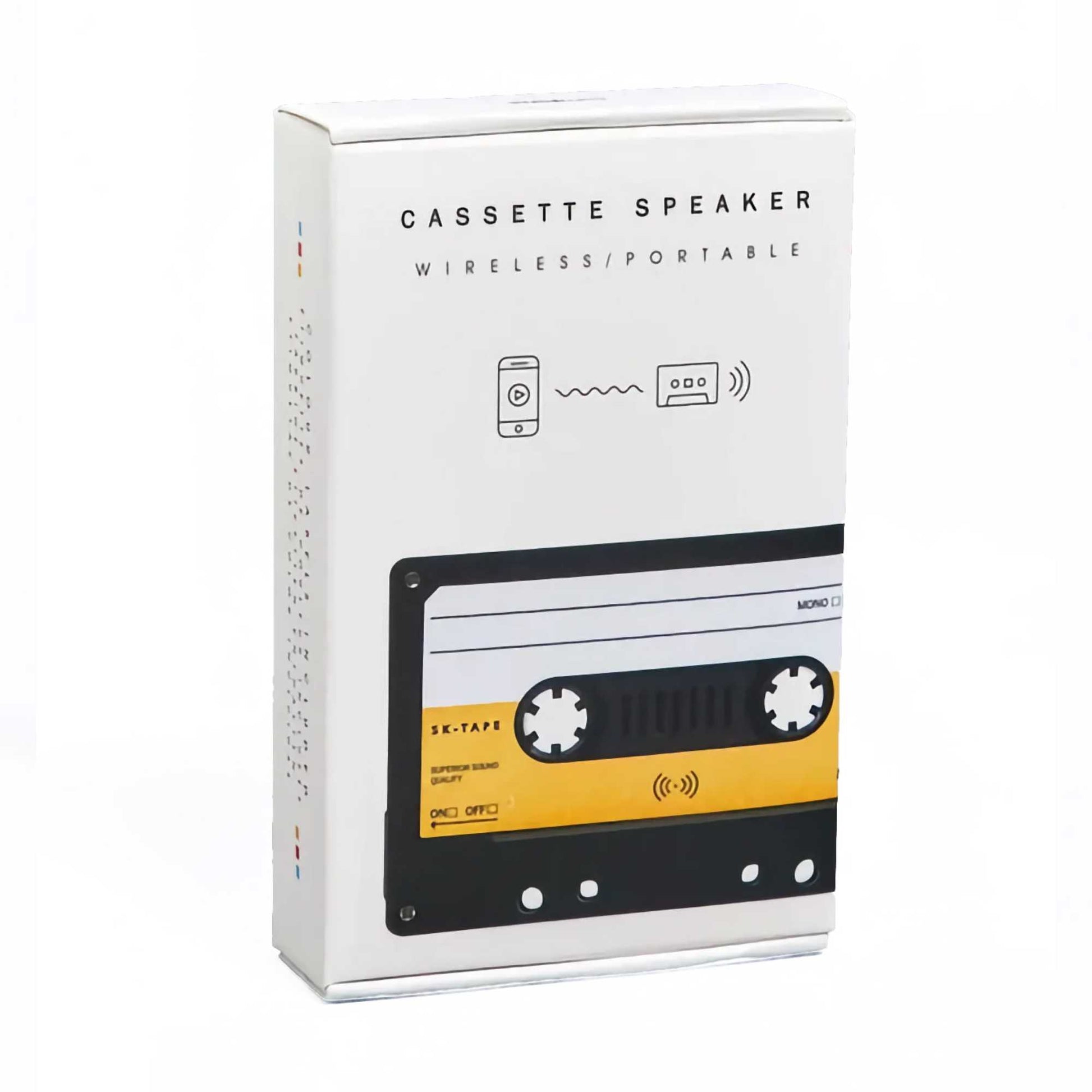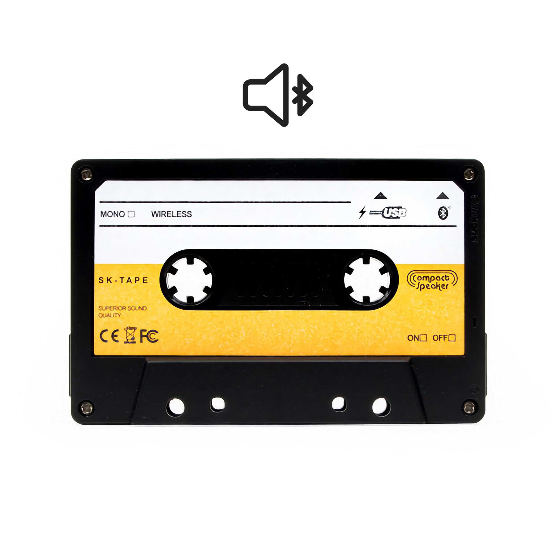 - Bluetooth speaker in the shape of a retro cassette tape.