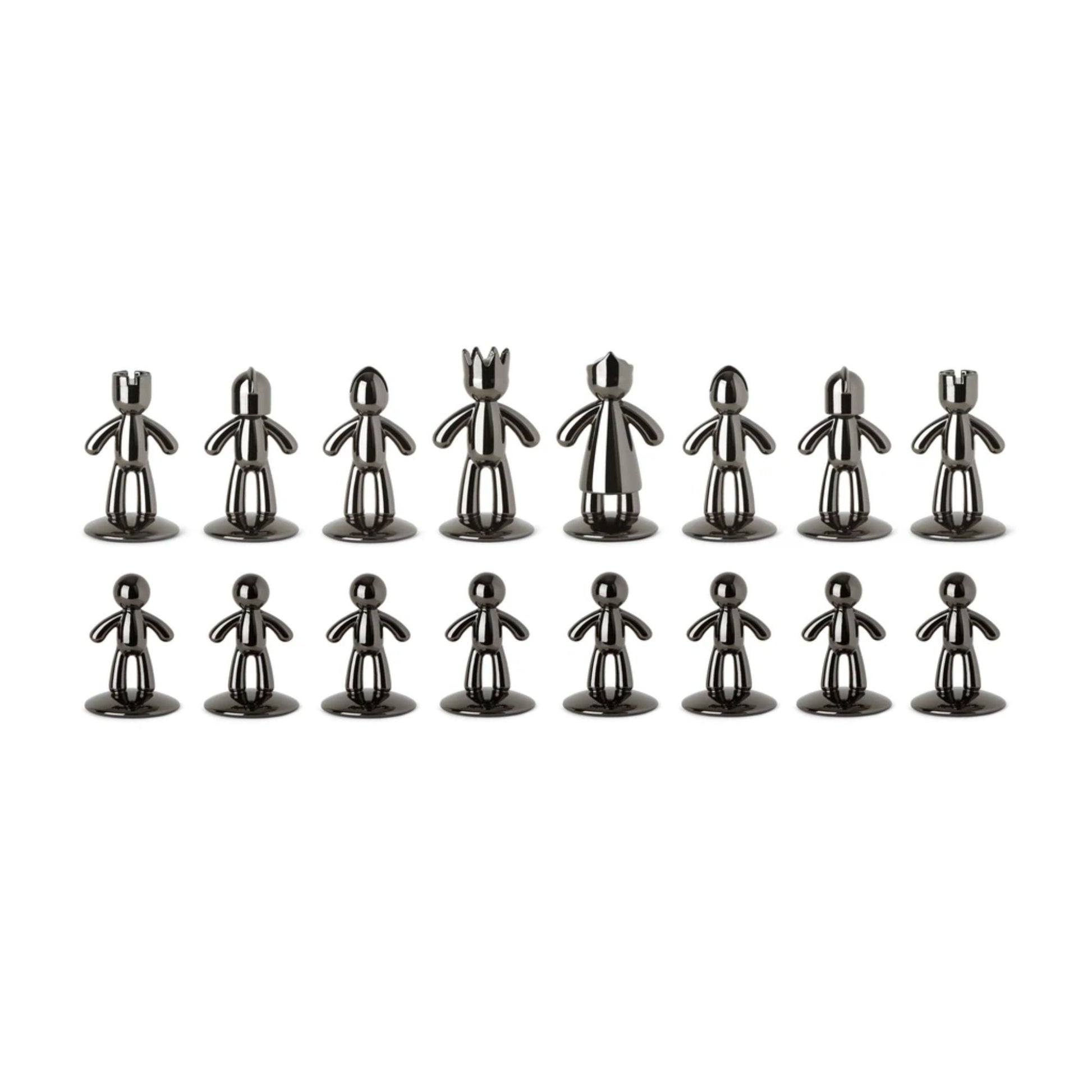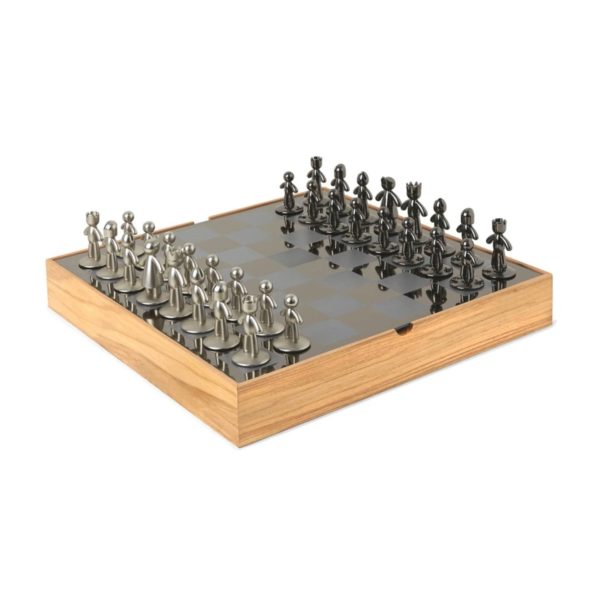 A playful chess board you won't tuck away. The iconic Umbra Buddy character takes on new forms as each role in the game of chess. Chess pieces are made of cast zinc and fit nicely into the wooden box when not in play. but you'll probably keep them on display ready for your next opponent.