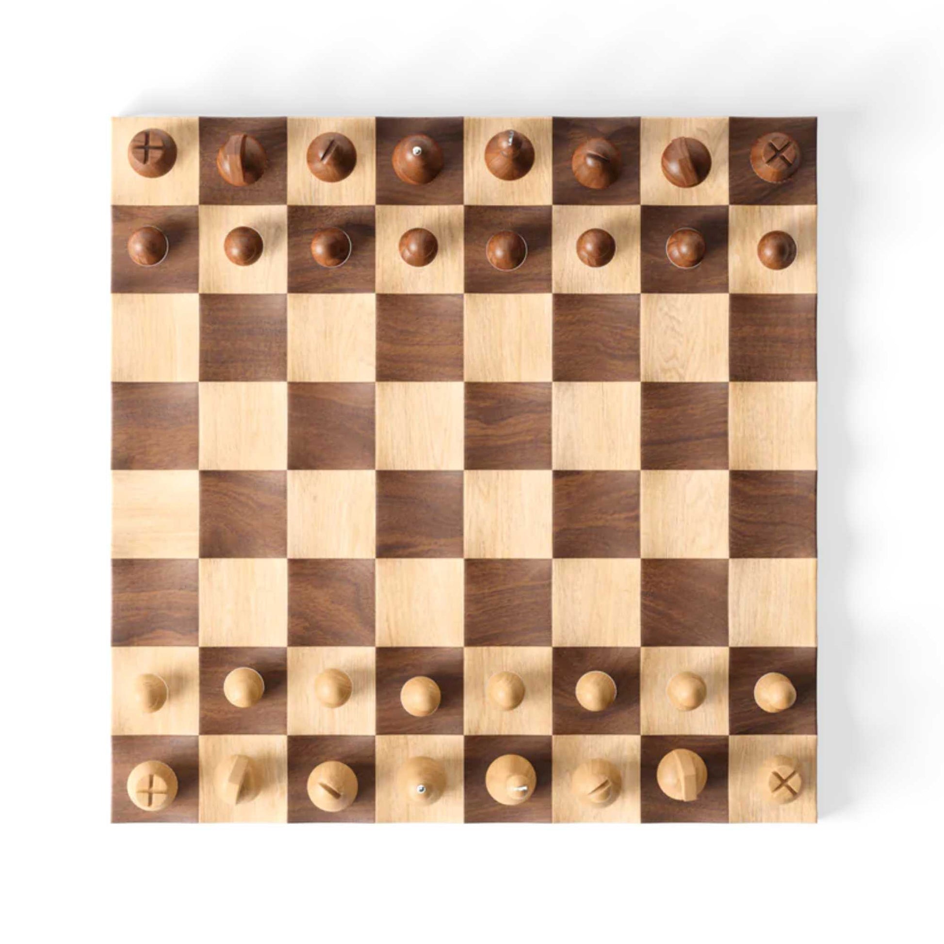 Get ready for a chess set like no other! Introducing the Wobble Chess Set - the perfect combination of classic and modern. With its concave landscape. this set brings a whole new level of excitement to the game. The freely quivering chess pieces add a lively interaction between the board and the pieces. It's the ultimate showpiece for your living room! Crafted with care. this prize-winning Chess Set is made of beautifully polished maple and walnut wood. But it's not just about the aesthetics. The board's unique design also adds motion to the game. Thanks to its concave landscape. the weighted playing pieces can freely move around. adding an extra element of challenge and strategy. Measuring at 14.88 x 14.88 x 4.5 inches (38 x 38 x 11 cm). this Wobble Chess Set is the perfect size to fit in any space. Its natural wood finish adds a touch of warmth to any room. So why settle for a regular chess set when you can have one that wobbles? Wood is a unique natural material with variations in tone. texture. and grain. The product may vary from our imagery.