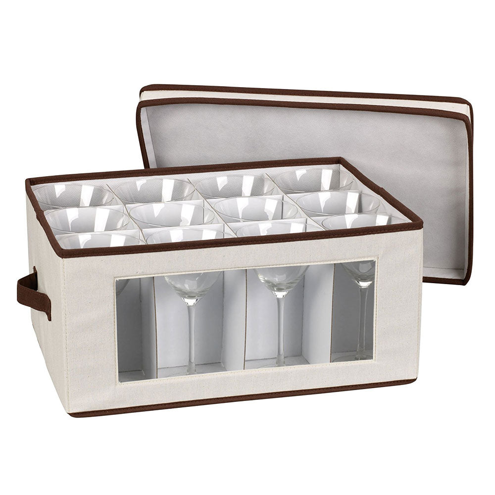 - Includes sturdy cardboard dividers to safely store up to 12 wine goblets or martini glasses approximately 4 inches in diameter